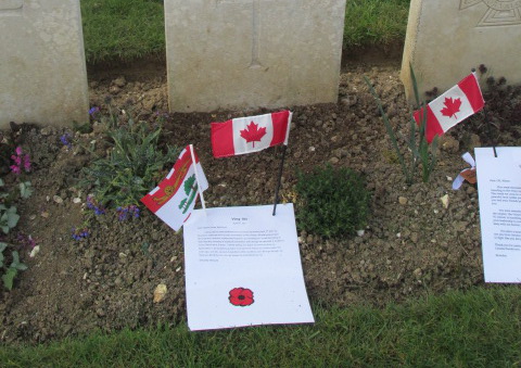 It was a long day but a privilege to visit this amazing memorial for the 100th Anniversary of this glorious Canadian battle which punched a big hole in the seemingly impenetrable German defenses and changed the course of the war. We also visited the grave sites and honored five family heroes who fell in the Great War. We were thrilled to see thousands of Canadian school kids attend the ceremonies and visit the hundreds of military cemeteries in France and Belgium, to visit and leave mementos at the graves of individual soldiers. A girl from PEI visited one of our family members and left a letter and some flags.